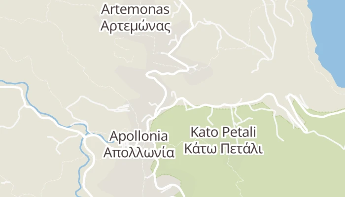 Este nevoie de în aproximativ 10 minute cu mașina până la Saoures și de 5 minute de mers pe jos până în centrul orașului Apollonía. De asemenea, vila cu 7 băi este situată la 2.5 km de Biserica Ortodoxă a celor Șapte Martiri din Kastro.